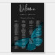 THE SAMPLE IMAGE OF THIS SIGN CONTAINS 150 GUEST NAMES. IF YOU HAVE MORE THAN 150 GUESTS, YOU MAY NEED TO EDIT THE FONT SIZE OF THE NAMES IN THE DESIGN TOOL, OR CONTACT THE DESIGNER TO REQUEST THE CHANGES BE MADE FOR YOU. This wedding seating chart foam board sign design features a dark, moody theme that is simple, yet stunning. A dark charcoal black background is the perfect canvas for a single teal blue moth, its wings spread for flight. Unique and elegant, this design can be used for any season. Created by Simply Farmhouse Press.