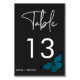 This wedding table number card design features a dark, moody theme that is simple, yet stunning. A dark charcoal black background is the perfect canvas for a single teal blue moth, its wings spread for flight. Unique and elegant, this design can be used for any season. Created by Simply Farmhouse Press.