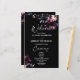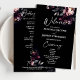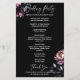 Dark moody noir elegant gothic wedding program, black burgundy peonies on dark background wedding day stationery order of service