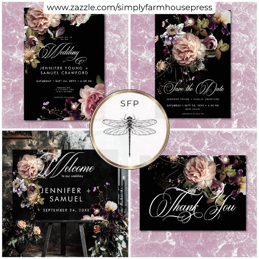 Dark Moody Pastel Opulent Floral Order of Events Foam Board