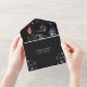 Set the stage for a hauntingly elegant event with this gothic all-in-one invitation. This luxurious floral wedding invitation features a bouquet of black and red peonies and blue berries against a black background. It is perfect for a dramatic and unforgettable celebration. They are ideal for lovers of dark romance and timeless allure.