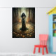 A witch stands within a glowing ritual circle, flames flickering and energy pulsing from every direction. This captivating gothic poster evokes ancient rites, sacred symbols, and the raw force of moonlit magic. A striking addition to meditation rooms, altar spaces, or Halloween decor with a dark feminine touch.