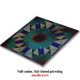 This decorative ceramic tile is a stunning piece of artistry that captures the essence of traditional Moorish design. The tile is square in shape and features an intricate geometric pattern that is symmetrical and kaleidoscopic, drawing the eye to its center. The design is anchored by a central red polygonal shape, which is surrounded by layers of stars and other geometric shapes. This complex geometry is a hallmark of Moorish or Islamic artistry, known for its precision and beauty. The color palette is a harmonious blend of deep blues, rich greens, muted golds, and bold reds. These colors add depth and dimension to the design, creating a captivating visual effect. The darker shades bordering the tile create a framing effect, highlighting the central design and adding to the overall aesthetic appeal of the tile. This tile is not just a decorative piece, but a testament to the rich history and craftsmanship of Moorish art. It would add both visual interest and a touch of historical elegance to any space.