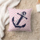 Dark Nautical Blue Anchor Pink Zigzag Chevron Throw Pillow
