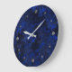 Dark navy black stone marble granite textured prin large clock