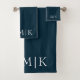 Dark Navy Blue and White | Modern Monogram Bath Towel Set