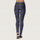These modern leggings feature a dark striped pattern in navy blue and black with thin white stripes in between.
