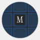 Dark Navy Blue Custom Single Initial Striped Classic Round Sticker