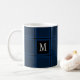 Dark Navy Blue Custom Single Initial Striped Coffee Mug