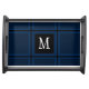 Dark Navy Blue Custom Single Initial Striped Serving Tray