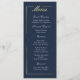 This dark navy blue menu with a delicate gold frame and white script is simply elegant. Perfect for any occasion ... all fields can be customized for your luncheon or dinner. Optional names on back for weddings and anniversaries