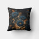 Dark Navy Blue & Gold Rustic Floral Glam Boho Throw Pillow