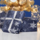 Dark Navy Blue Night Sky Fresh Fallen Snowflakes Wrapping Paper