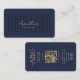 Modern Dark Navy Blue Professional Marketing Monogram business card with QR code and facebook and instagram icon