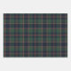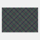This elegant and contemporary gift wrapping paper set showcases a plaid pattern in shades of green, dark blue, and red, creating a classy and nostalgic English holiday atmosphere. The paper is perfect for wrapping Christmas gifts in a classic colonial style and complements a charming country cottage or log cabin theme.