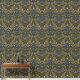 Dark Navy Blue Woodland Block Print Damask Wallpaper