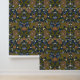 Arts and crafts inspired woodland wallpaper with a blend of modern victorian, block print, and folk art stylings. This forest animal wallpaper features bears, birds, deer, and fox, surrounded by leaves, flowers, and botanicals in deep, dark shades of navy blue, brown, burnt orange, and seaweed green.