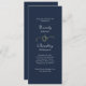 This simple white script print on a dark navy blue background with a gold ampersand is an elegant program for your wedding day. Personalize all the information including ceremony details and attendants on the back with the same script font