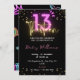 Dark Neon Light 13th Birthday Invitation