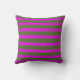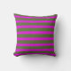 This throw pillow design features a pattern of stripes having colors like dark olive green and fuchsia.