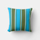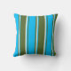 This throw pillow design features a dark olive green, deep sky blue, and mint cream colored stripes pattern.
