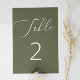 Dark Olive Green Formal Woodland Botanical Wedding Table Number