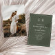Dark Olive Minimalist Monogram & Photo Wedding Invitation