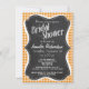 Dark Orange Gingham; Chalkboard Invitation