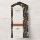 Dark Orange Groovy Retro Arch Floral Wedding All In One Invitation