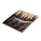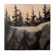 Dark pines on a rugged cliff with gray pink sky ceramic tile