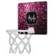 Dark Pink faux shiny glitter sparkles Monogram Mini Basketball Hoop