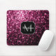 Dark Pink faux shiny glitter sparkles Monogram Mouse Pad