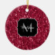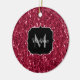 Dark pink red magenta faux sparkles Monogram Ceramic Ornament