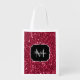 Dark pink red magenta faux sparkles Monogram Grocery Bag