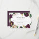 Stylish and elegant floral RSVP cards featuring your wedding details surrounded by an oval wreath of dark plum watercolor flowers and green leaves. Designed to coordinate with our Dark Plum Floral wedding collection.