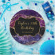 This elegant and glamorous birthday party plate features a dark purple agate marble background with faux gold glitter accents. The text combines handwritten script and modern sans serif fonts for a classy and sophisticated look. The sequins and distressed texture creates the perfect blend of chic and grunge.