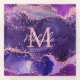 This coaster features an elegant and glamorous dark purple and pink agate marble background with faux pink glitter accents. The monogram combines handwritten script and modern sans serif fonts for a classy and sophisticated look. This will make the ideal gift as it can be customized with a name and initial. The sequins and distressed texture creates the perfect blend of chic and grunge.