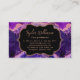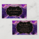 This elegant and glamorous business card features a dark purple and pink agate marble background with faux pink glitter accents. The text combines handwritten script and modern sans serif fonts for a classy and sophisticated look. The sequins and distressed texture creates the perfect blend of chic and grunge.