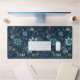 Dark Purple and Teal Floral Patterned Desk Mat