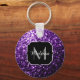Dark Purple faux shiny glitter sparkles Monogram Keychain