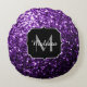 Dark Purple faux shiny glitter sparkles Monogram Round Pillow