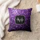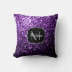 Dark Purple faux shiny glitter sparkles Monogram Throw Pillow