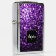 Dark Purple faux shiny glitter sparkles Monogram Zippo Lighter