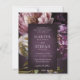 Elegant budget wedding invitation featuring a dark purple floral theme. The moody color palette is great for a fall wedding. Use the template to add a photo and generate a QR code or remove either in the design editing tool.