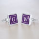 Dark Purple Framed Monogram Silver Cufflinks