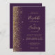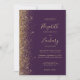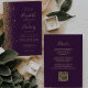 Dark Purple Gold Faux Glitter QR Code Wedding Invitation