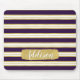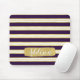 Dark Purple Gold Stripe Pattern Custom Name Mouse Pad