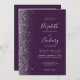 The left-hand edge of this elegant modern wedding invitation features a silver faux glitter design. The customizable text combines silver gray handwriting, copperplate and italic fonts on a dark purple background. Add your favorite photo to the reverse side, along with additional text and a QR code to send guests to your wedding website.