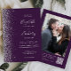 Dark Purple Silver Glitter Photo QR Code Wedding Invitation