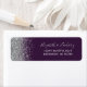 The left-hand edge of this elegant modern wedding return address label features a silver faux glitter design. The customizable text combines silver gray handwriting, copperplate and italic fonts on a dark purple background.